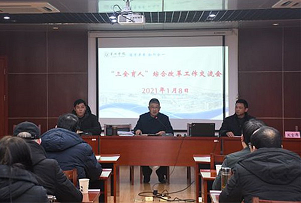 为进一步推进学校“三全育人”综合改革工作,切实提升思想政治工作质量,学校于1月8日上午在第二会议室召开“三全育人”综合改革工作交流会。校党委副书记阮爱民出席会议,“十大育人”牵头单位负责人、各学院分党委书记、辅导员代表参加会议。会议由学工部副部长华紫武主持。
