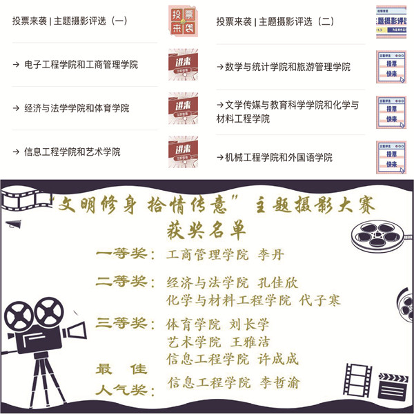 用镜头定格校园美好,用文字传递温暖瞬间,彰显我校学子积极向上的精神风采。12月25日—1月5日,“文明修身拾情传意”主题摄影大赛于线上开展评选,选手需提交紧扣主题的参赛作品,并配一段简单的文字叙述加以说明、点缀。学生通过“汤青之声”平台参与投票,经投票数量和评委的综合评选,产生最终评审结果。