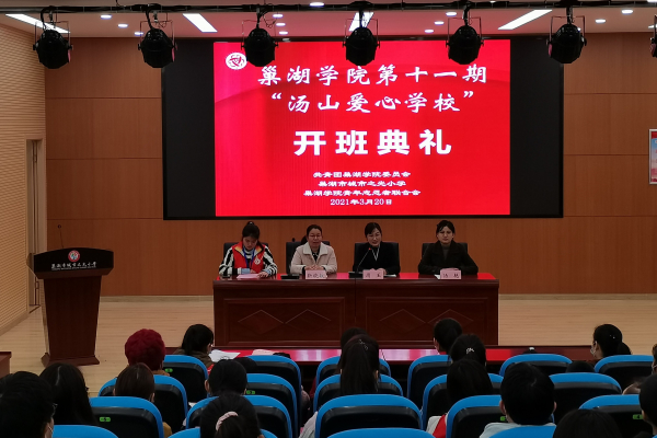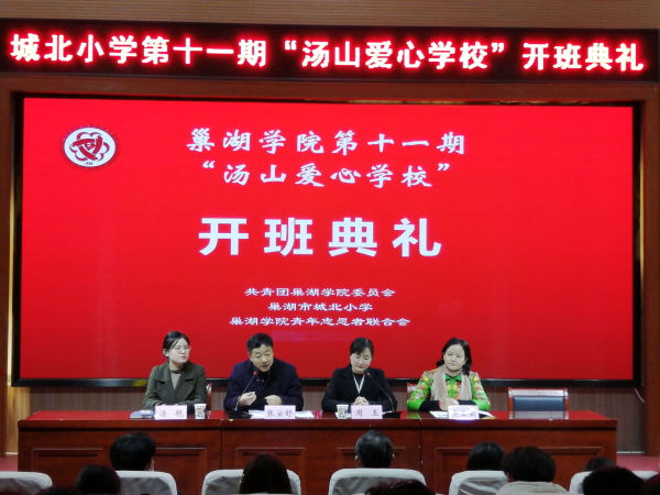 为扎实稳步推进“汤山爱心学校”爱心支教活动,3月20日上午,万象城awcsport官网第十一期“汤山爱心学校”开班典礼分别于城北小学、城市之光小学教学点如期举行。巢湖团市委副书记周玉,城北小学校长张安舒、副校长吴立云、德育主任陈宇,城市之光小学德育主任靳晓敏,万象城awcsport官网团委汤艳,第十一期“汤山爱心学校”全体支教志愿者、小学生及学生家长参加典礼。