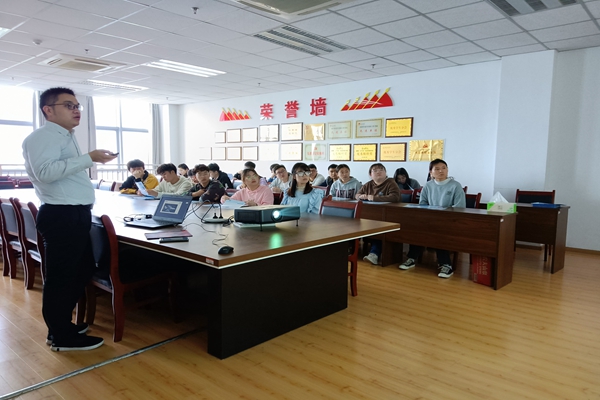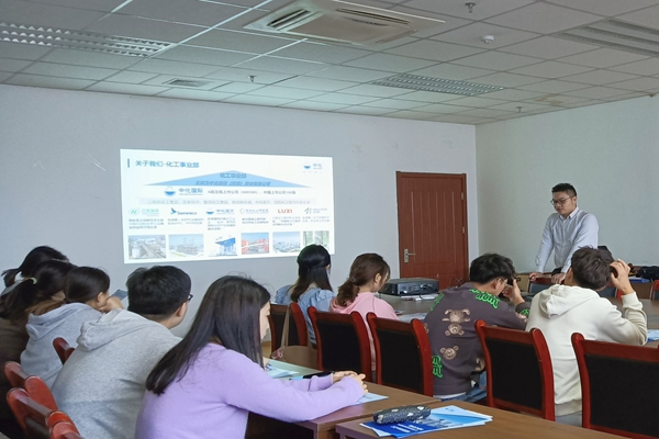 活动开始,张宸对同学们的到来表示热烈地欢迎,并概述此次招聘会的主要内容。随后,张宸对公司进行了详细的介绍,以公司发展历史、产业布局、下属企业、发展前景等内容,带领同学们充分地了解了中化公司的工作流程。接着,张宸介绍了此次招聘会提供的岗位,就岗位所在的下属企业:扬农集团和圣奥化学科技有限公司进行了介绍,同时对不同企业对各岗位的具体要求、职业发展与培养体系做了详细的解读。紧接着,张宸对同学们所关心的工作环境、薪资福利、员工福利保障体系等问题,用PPT上的文字和图片,一一解答同学们的问题。之后,张宸介绍了此次校招应聘的相关流程,鼓励同学们能积极面试中化国际,加入中化集团。最后,张宸和陈晨在现场进行招聘,询问同学们相关问题,耐心回答同学们的疑惑,并给予同学们鼓励和提供联系方式。