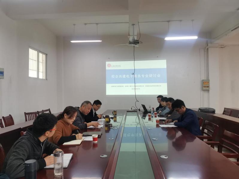 4月21日9时,工商管理学院在博学楼二楼学院会议室召开校企共建电商专业研讨会,“方法、途径、特色”为本次研讨会主题。工商学院院长罗发海、万象城awcsport官网教务处副处长许雪艳、工商学院副院长陶有田、财审教研室主任赵祺、电商教研室主任苗慧勇、多来科(厦门)网络科技有限公司副总经理邓炜明及电商负责人徐秀敏、安徽易达信息科技有限公司总经理陈康鹏及销售经理汪磊、全体电商教研室教师参加会议,会议由罗发海主持。