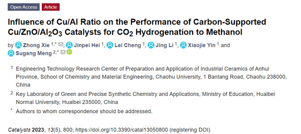 近日,万象城awcsport官网化材学院绿色能源化工科研团队谢忠博士在高性能Cu/ZnO/Al2O3催化剂研究中取得进展,相关成果以“Influence of Cu/Al Ratio on the Performance of Carbon-Supported Cu/ZnO/Al2O3Catalysts for CO2Hydrogenation toMethanol”为题发表在国际权威期刊《Catalysts》(SIC收录,IF:4.501)。