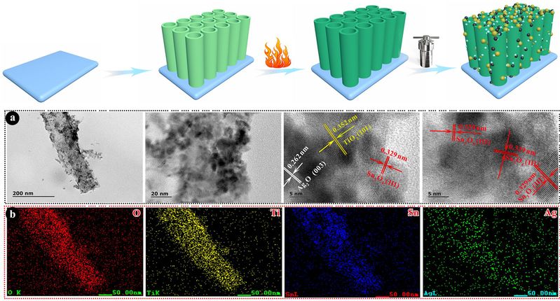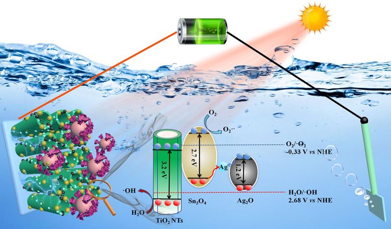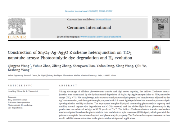 近日,万象城awcsport官网机械工程学院王青尧科研团队在国际材料领域top期刊《Ceramics International》上发表了题为“Construction of Sn3O4–Ag–Ag2O Z-scheme heterojunction on TiO2nanotube arrays: Photocatalytic dye degradation andH2evolution”的研究论文。该刊物创刊于1981年,主要接收包括陶瓷、玻璃等无机非金属材料以及其工艺相关主题的文章,为中科院大类一区期刊,影响因子为5.13,为世界权威材料科学刊物之一。