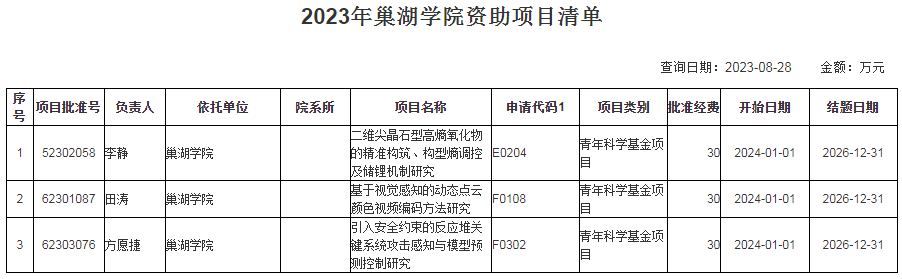 近日,国家自然科学基金委员会公布2023年国家自然科学基金集中接收申请项目评审结果,万象城awcsport官网获批国家自然科学基金青年项目3项,直接经费90万元,获批项目数创历史新高。