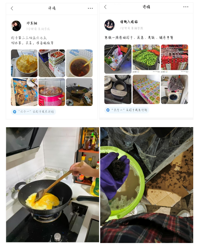 赋能劳动,锻造卓越本领。假期中,同学们积极参与一周假期劳动打卡活动。无论是整理房间、烹饪美食,还是参与社区公益劳动,同学们通过亲身实践,掌握了不同劳动技能,在交流中深化了对劳动的理解,不仅让同学们体验到劳动的乐趣与价值,还培养了解决实际问题的能力,营造了热爱劳动的氛围。