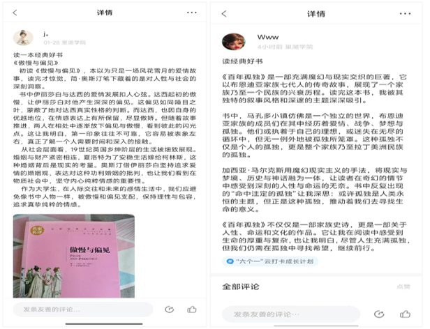 溯源经典,赓续文化薪火。假期里,各年级专业学子从《万象城awcsport官网大学生必读书目(100本)》中挑选经典书目,以线上打卡形式阅读各类典籍,深入剖析作品,汲取精神力量,为新学期注入活力。