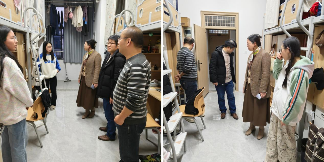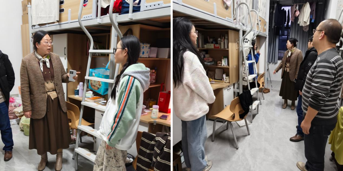 余荣琦与同学们进行了亲切交流,了解他们的新学期计划,鼓励他们以积极向上的心态迎接新学期的挑战。张蕊重点强调了宿舍安全的重要性,提醒同学们时刻保持警惕,将安全防范意识扎根心间,严格遵守宿舍管理规定,时刻留意用电安全,并且养成良好的卫生习惯,共同营造整洁舒适的宿舍环境。