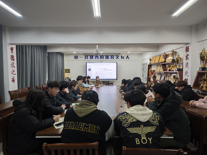 为激发学生创新潜能,助力赛事筹备工作,3月6日晚,体育学院在学院会议室开展2025年“挑战杯”大学生课外学术科技作品竞赛选拔交流会。学院党委副书记朱春花、团委副书记杜锐及全体参赛团队参会。
