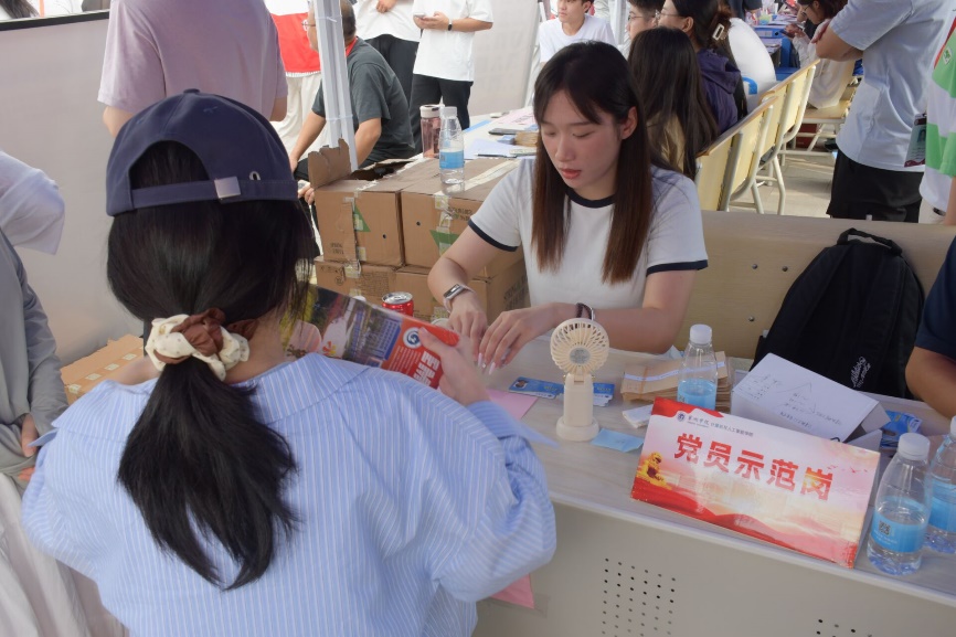 计算机与人工智能学院的报到处前人头攒动,新生们怀揣着对智能科技领域的向往,在工作人员指引下有序完成信息核验,即将开启专业探索之旅。工作人员提前备好入学资料袋,细致讲解专业学习方向,为新生勾勒大学成长蓝图。现场设置的“党员示范岗”更是成为暖心标杆,党员老师与学生志愿者坚守岗位,细致办理入学手续。警察同志为提高新生的反诈能力对他们进行耐心地讲解,全体老师、志愿者们均以饱满的热情投入迎新工作之中。