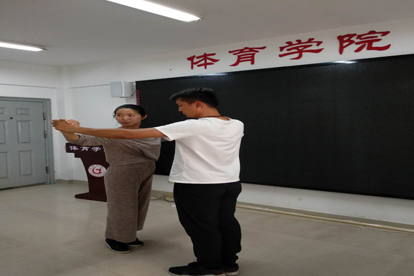 选拔性比赛参照安徽省第五届高校教师教学技能比赛规程,采用无生上课的形式进行8分钟片微课教学。参赛教师根据自己的专业方向,选取排球、网球、体育舞蹈、武术等体育项目为教学内容。整个比赛过程紧张、激烈,参赛教师充分展示了自我的教学热情和教学风格。