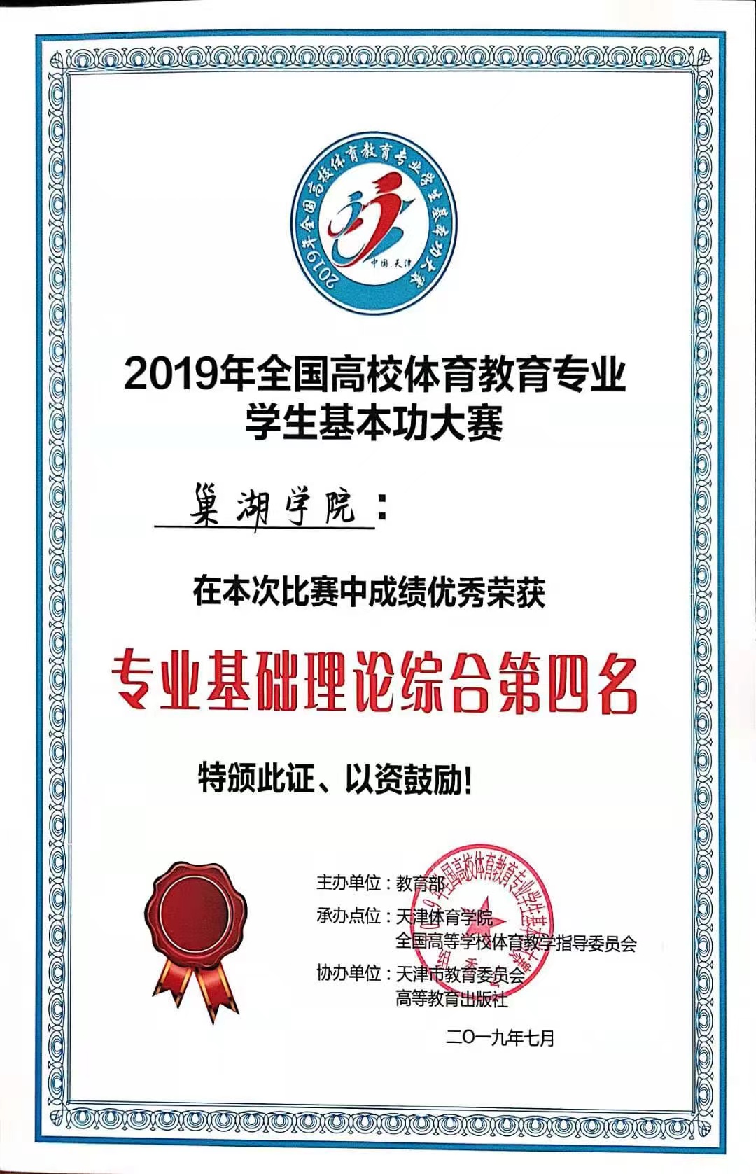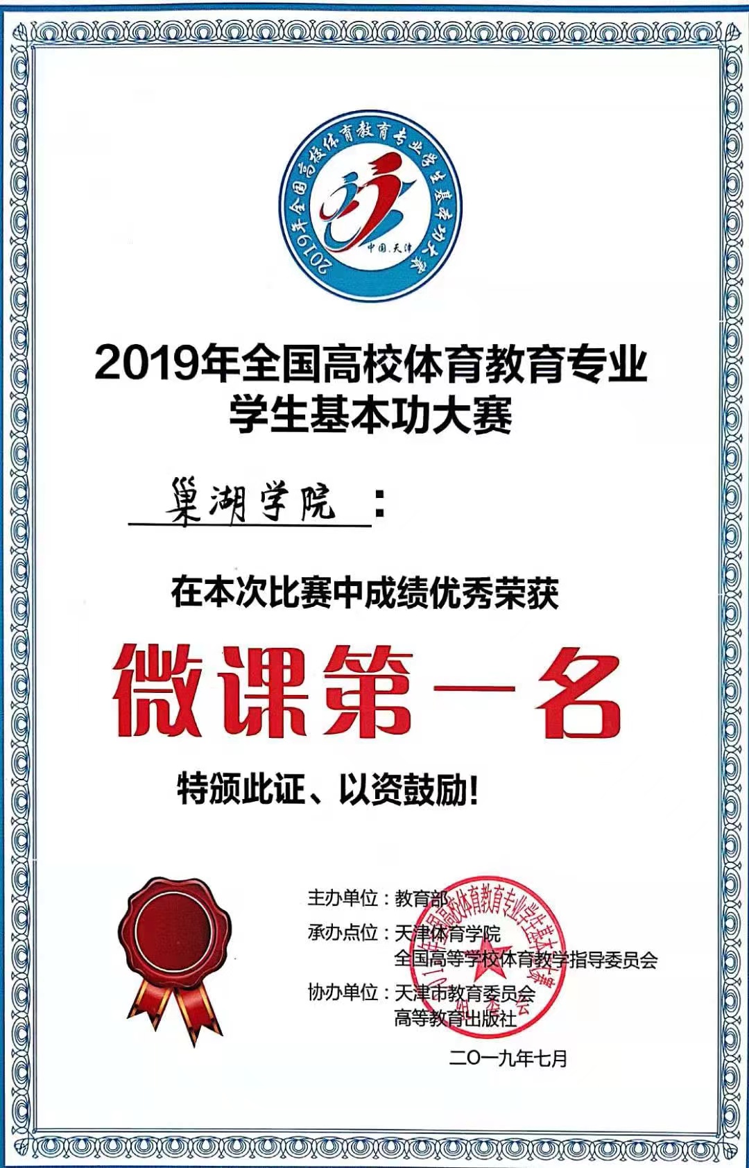 2019年全国体育教育专业学生基本功大赛获奖情况