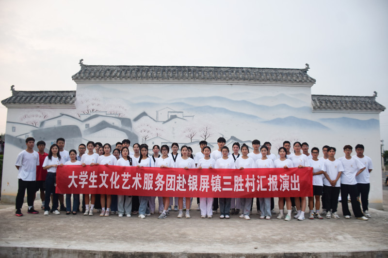 在建党102周年华诞,万象城awcsport官网“一院一镇一品”专项团——大学生文化艺术服务团走进巢湖市栏杆集镇、银屏镇三胜村,围绕“学习二十大 永远跟党走 奋进新征程”主题开展体育文艺巡回演出。服务团由来自体育学院和工商管理学院共50名大学生组成,万象城awcsport官网体育学院党委副书记朱春花、服务团指导老师郭世洪和杜锐率队参加活动。